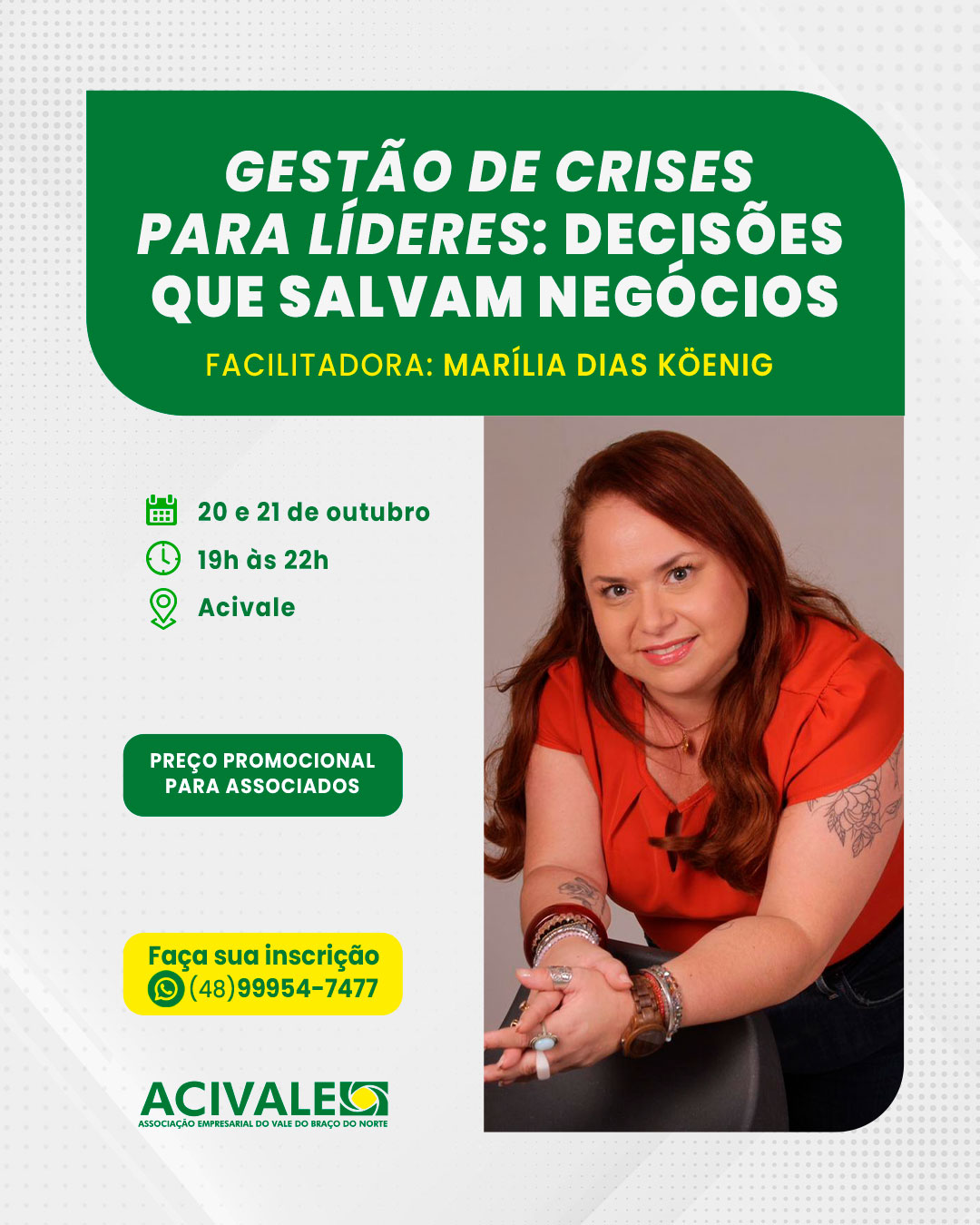 Objetivo:  Capacitar gestores, líderes e profissionais de pequenas e médias empresas para identificar riscos, prevenir e lidar com crises organizacionais de forma estratégica. O curso busca oferecer ferramentas práticas de comunicação, tomada de decisão e liderança em situações críticas, assegurando a continuidade dos negócios, a preservação da imagem institucional e o fortalecimento da confiança interna e externa.